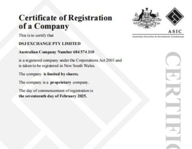 But now after looking into this matter more, it appears to be just an Incorporation number 684 574 310 (DSJ Exchange) PTY Limited Company.