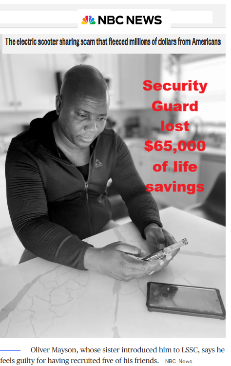 There was a big scam called LSSC Scooters that stole Billions of dollars from investors last year with a fake scooter rental company.